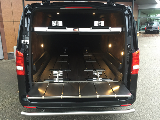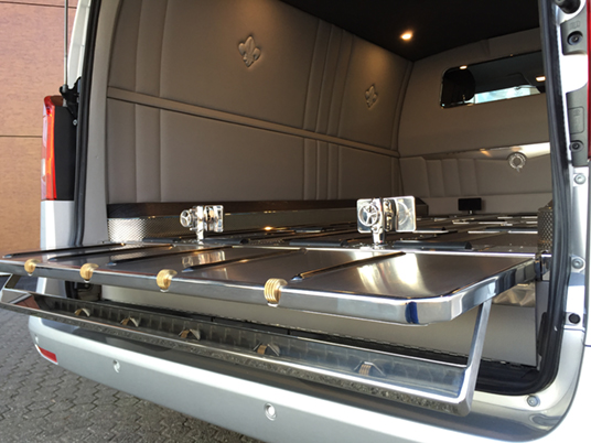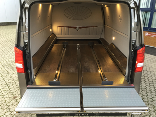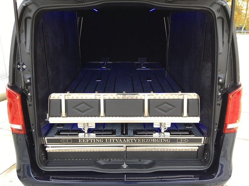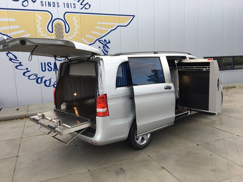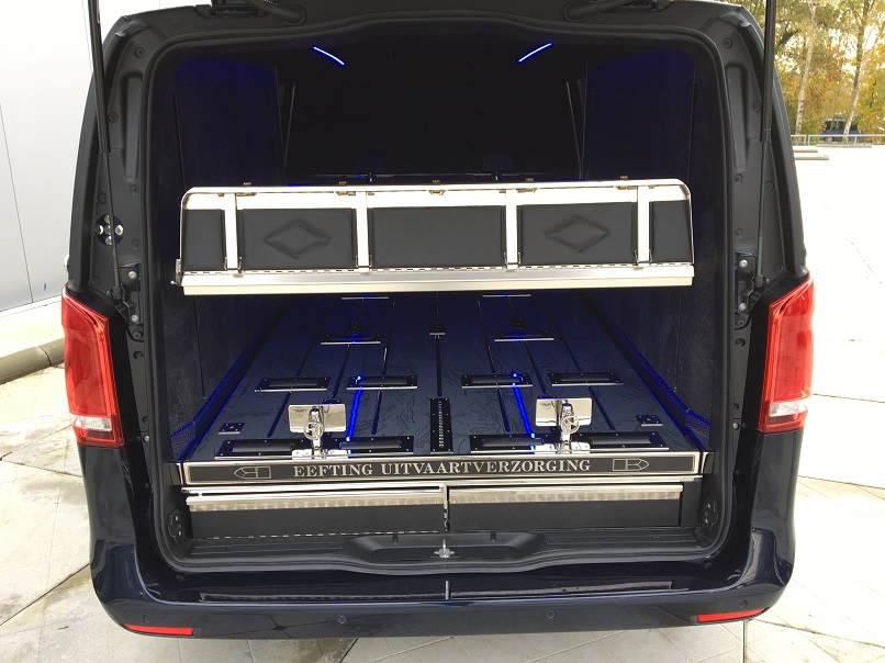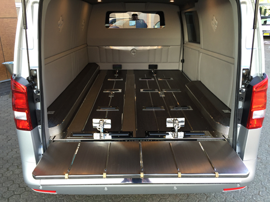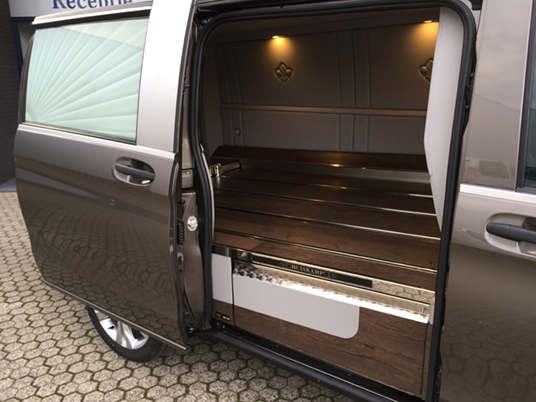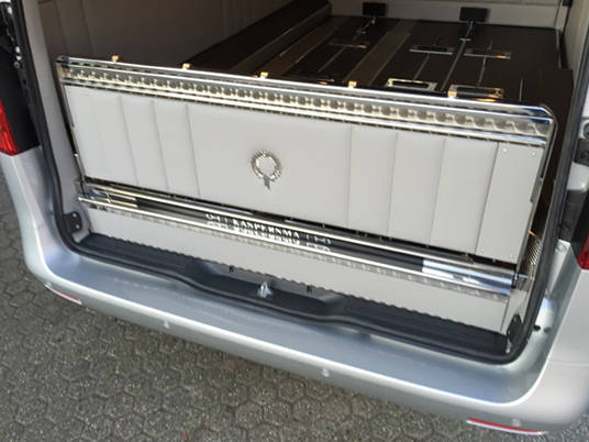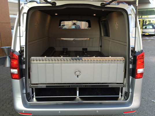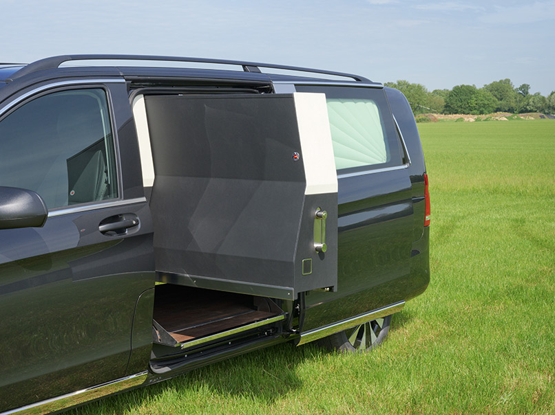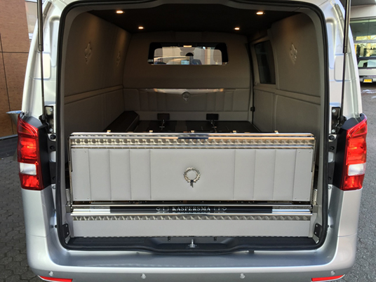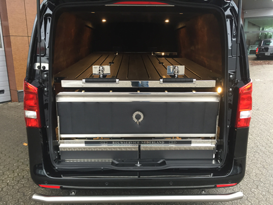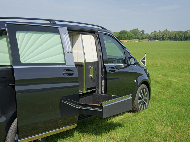 Beide Modelle Mercedes Bestattungsfahrzeuge sind eine optimale Ergänzung zu Ihrem Team. Der elegante, funktionelle Vito und V-Klasse unterstützen Ihre Mitarbeiter bei der täglichen Arbeit. Neben Raum für zwei, vier oder sogar sechs Särge, bieten die Mercedes Bestattungsfahrzeuge genügend Platz für Ihren Scherenwagen, Klappsargwagen, Ihre Wandschirme, Koffer, Kühler und sonstiges Zubehör! Bestattungsfahrzeuge aus dem Hause Huiskamp sind sehr praktisch und überraschen durch ihre pietätvolle Erscheinung – eine Symbiose von Funktionalität und Eleganz.