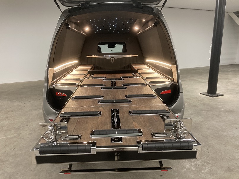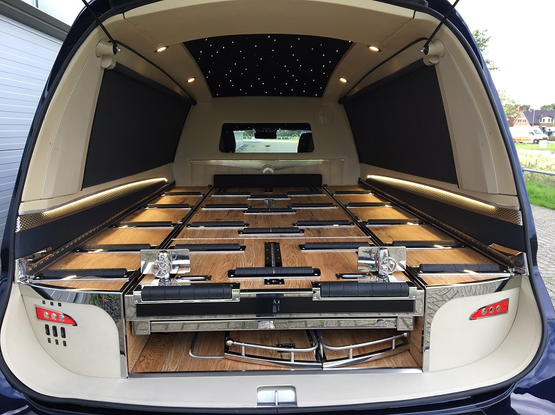 Der Huiskamp Glass XL ist mit seinen imposanten Abmessungen und großen Seitenscheiben vor allem ein Hit auf dem deutschen Markt. Das Fahrzeug ist sehr praktisch durch den extrabreiten Durchgang von 1,48 m für 2 Särge. Der Glass XL hat eine Sargraumbreite von 1,52 m und eine Sargraumlänge von 2,40 m. Ein Fahrzeug mit imposanten Abmessungen und trotzdem elegant. Die halben Seitentüren bieten außerdem Platz für Ihren Scherenwagen, Ihre Koffer und sonstige Utensilien. Bitte sehen Sie sich die Bilder an!