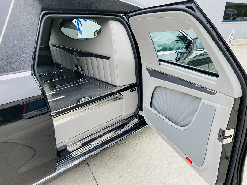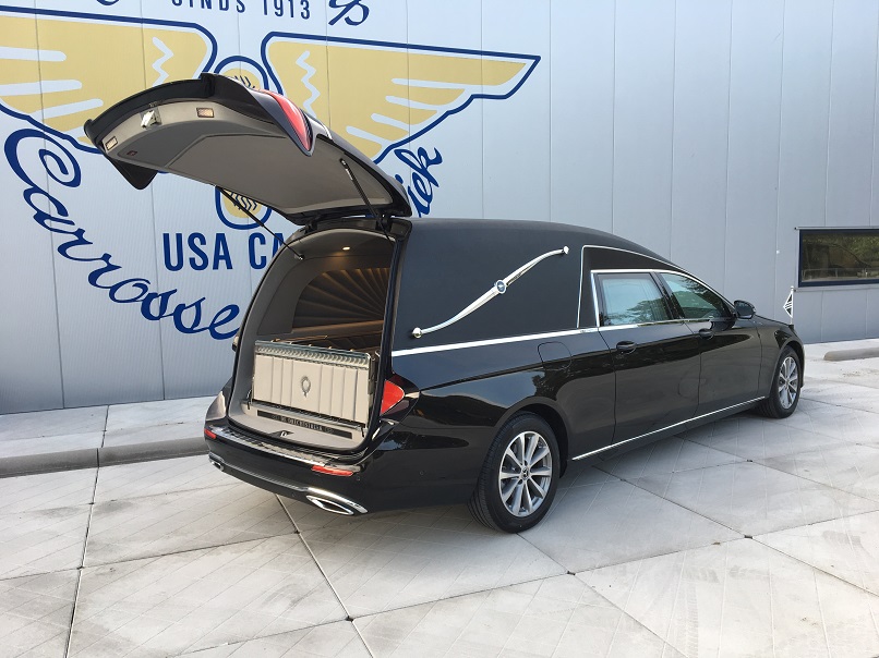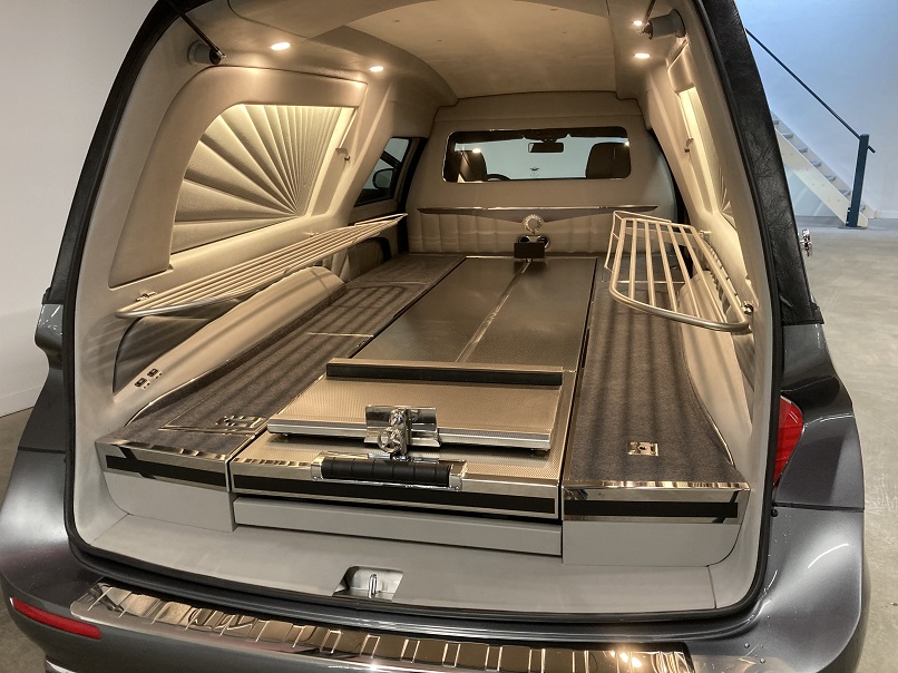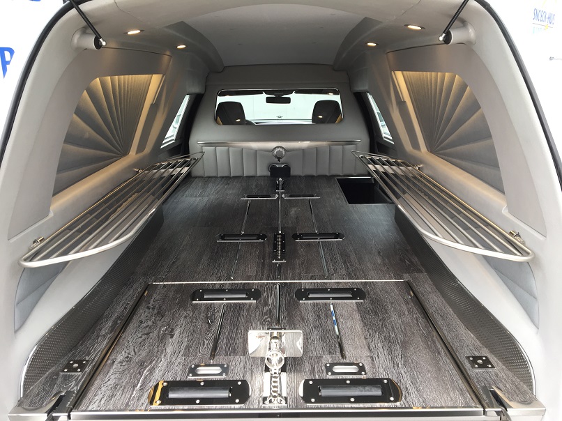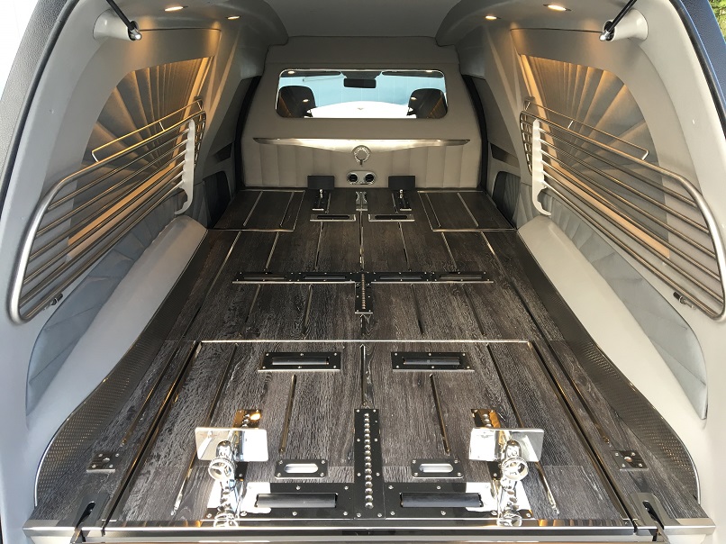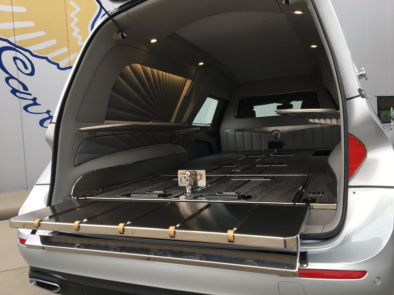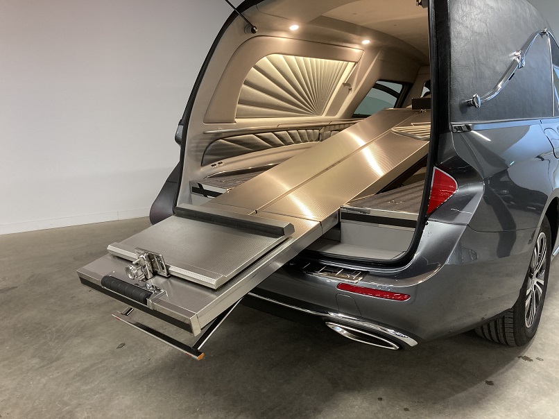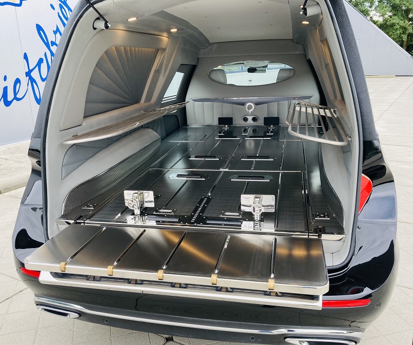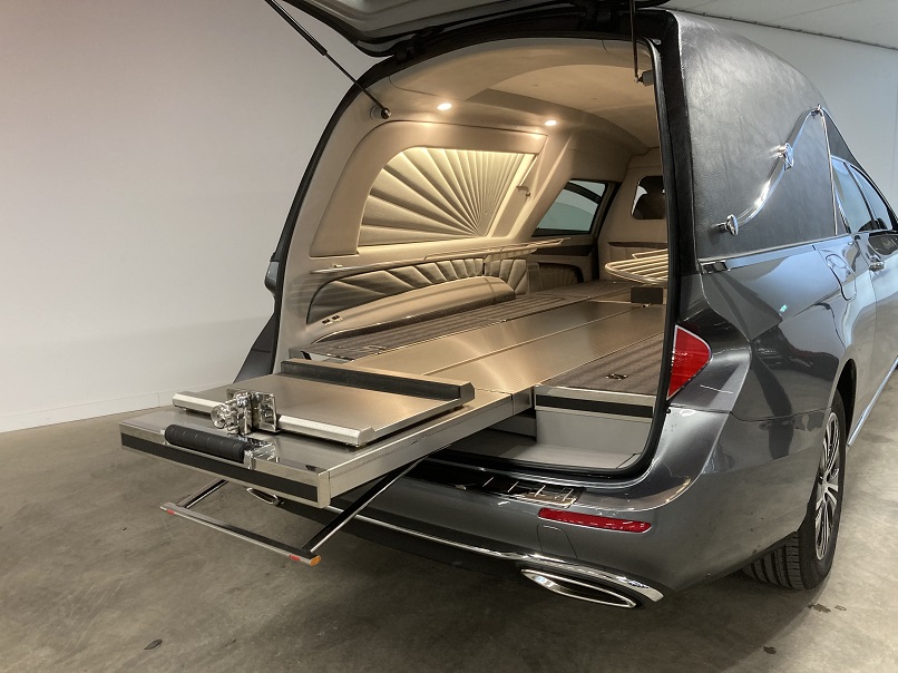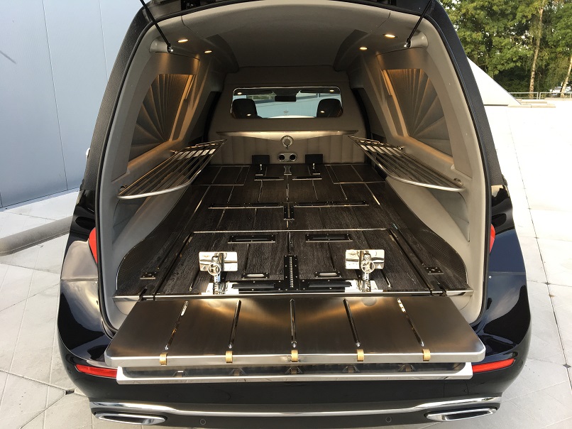 - Elektrisch herausziehbare und kippbare norwegische Sargbühne.