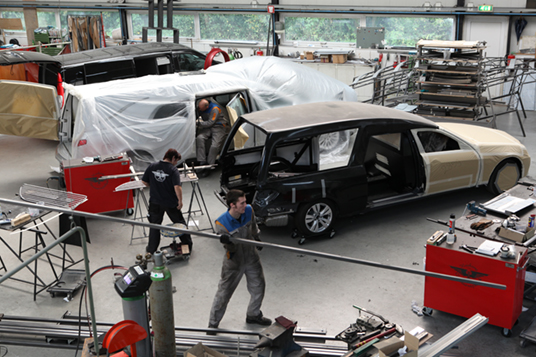 In der modernen Manufaktur von Huiskamp sind heutzutage ungefähr 30 erfahrene Fachleute und einige begeisterte Lehrlinge beschäftigt. Die spezialisierten Entwerfer, Metall-Facharbeiter, Schlosser, Polsterer, Lackierer und Monteure beschäftigen sich täglich mit dem Bau, der Renovierung, der Optimierung, dem Import und der Wartung von Bestattungsfahrzeugen.